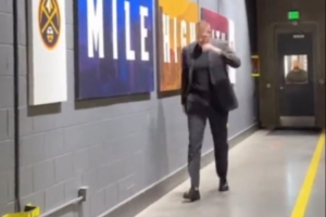 哈哈!掘金给约基奇买了芝士玉米饼 后者看了一眼径直走开