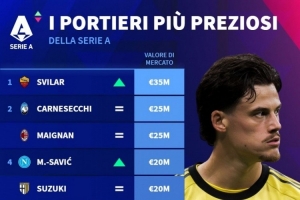 意甲门将身价排名:斯维拉尔3500万欧居首,卡内塞基、迈尼昂次席