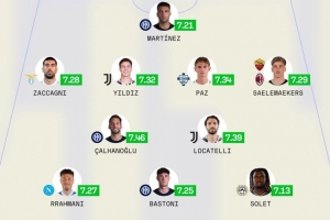 sofascore意甲2025最佳阵:恰20领衔国米3将,伊尔迪兹、萨56在列