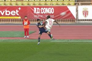 吓人😱摩纳哥中场停高空球没看到对手,直接飞踹塔利亚菲科脖子