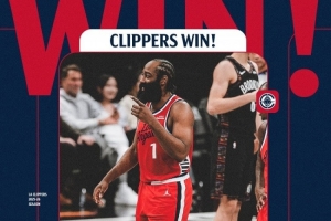 13中10砍31+6带队赢球!快船赢球海报:哈登微笑瞬间成为封面