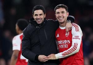 “如今的 style='color:red;' href=/qiudui/zuqiu/56.html>阿森纳不仅防守好,即使并未完全解决九号位问题,他们也找到了进球的感觉。其他位置的队员也能完成进球,所以我想他们已经具备了夺冠的实力。”