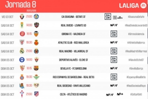 西甲官方公布联赛第8轮赛程:皇马主场迎黄潜,巴萨客战塞维利亚