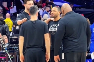 体育资讯1月23日讯 style='color:red;' href=/qiudui/lanqiu/2.html>火箭客场挑战 style='color:red;' href=/qiudui/lanqiu/28.html>76人,赛前球队官方晒出旧将埃里克·戈登与球队老熟人们寒暄的视频。