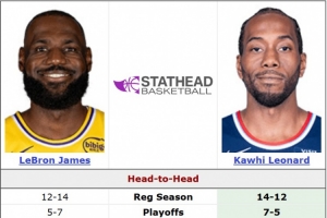 生涯至今, style='color:red;' href=/qiuyuan/zuqiu/367.html >詹姆斯常规赛面对伦纳德12胜14负,季后赛5胜7负。