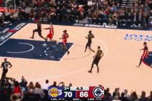 场均一个表演时刻!詹姆斯飞身抢断 冲过两人堵截滑翔双手暴扣
