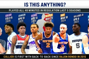 纯纯牛马!科利尔是自2015年隆多之后首位背靠背打满全场的球员