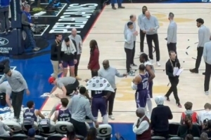 即将13连败!德罗赞在场边摔水瓶 工作人员赶紧上前清理