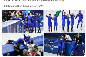 国米官方社媒:祝贺意大利短道速滑队夺得混合接力冠军