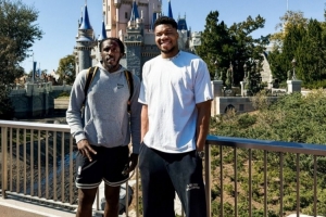 体育资讯2月11日讯 style='color:red;' href=/qiudui/lanqiu/20.html>雄鹿官方晒图,字母哥和托里恩·普林斯在奥兰多迪士尼游玩。