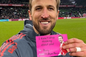 情人节彩蛋!拜仁官推晒凯恩手持卡片互动照:球迷没办法不想你!