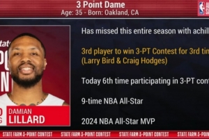 75大荣誉+1!利拉德三夺三分大赛冠军 9次全明星&2024年全明星MVP