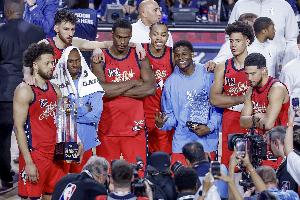 体育资讯2月16日讯 style='color:red;' href=/qiudui/lanqiu/9386.html>NBA全明星正赛 style='color:red;' href=/qiudui/lanqiu/20109.html>决赛, style='color:red;' href=/qiudui/zuqiu/214.html>美国新星队47-21击败 style='color:red;' href=/qiudui/zuqiu/214.html>美国星条队,夺得冠军。