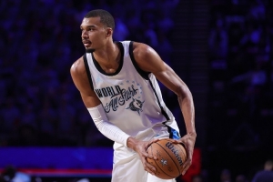 体育资讯2月16日讯 今日,全明星世界队成员、 style='color:red;' href=/qiudui/lanqiu/13.html>马刺球星维克托·文班亚马出席了新闻发布会。