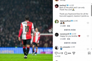 斯特林此役替补出场,上演 style='color:red;' href=/qiudui/zuqiu/7206.html>费耶诺德首秀,赛后他在社交媒体上写道:“重返赛场,对上帝唯有感恩。”
