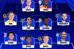 欧冠周最佳阵容:瑟尔洛特、琼阿梅尼、K77、海于格、托纳利入选