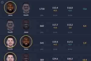 有东契奇无 style='color:red;' href=/qiuyuan/zuqiu/367.html >詹姆斯时,净效率+18.4