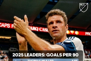 本赛季美职联每90分钟进球榜:穆勒1.16球居首,梅西1.08球次席