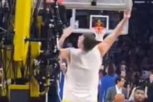 都兴奋的跳起来了!东契奇360°转身单手重扣+超高弧线推射三分