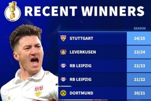 体育资讯10月29日讯 《转会市场》统计了近10年 style='color:red;' href=/qiudui/zuqiu/224.html>德国杯冠军,拜仁3次居首但已5年未能夺冠,多特、莱比锡各2冠。