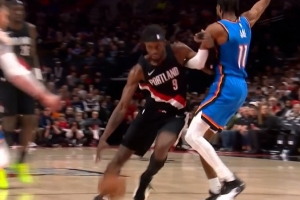 夹手臂了!格兰特突破被吹进攻犯规&开拓者挑战失败