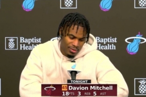 体育资讯11月18日讯 style='color:red;' href=/qiudui/lanqiu/9386.html>NBA常规赛, style='color:red;' href=/qiudui/lanqiu/25.html>热火115-113险胜 style='color:red;' href=/qiudui/lanqiu/18.html>尼克斯。赛后,戴维恩·米切尔接受了采访。