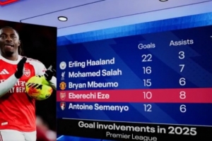 据BBC统计,埃泽今年英超参与18粒进球,仅少于 style='color:red;' href=/qiuyuan/zuqiu/3.html >哈兰德、 style='color:red;' href=/qiuyuan/zuqiu/5.html >萨拉赫、姆伯莫。