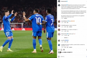 巴尔韦德也在社媒晒出与 style='color:red;' href=/qiuyuan/zuqiu/45.html > style='color:red;' href=/qiuyuan/zuqiu/376.html > style='color:red;' href=/qiudui/zuqiu/6836.html>姆巴佩、维尼修斯庆祝合影,配文写道:“经过一周的风波,我们比以往任何时候都更加团结。拥有维尼修斯和 style='color:red;' href=/qiuyuan/zuqiu/45.html > style='color:red;' href=/qiuyuan/zuqiu/376.html > style='color:red;' href=/qiudui/zuqiu/6836.html>姆巴佩是我们的幸运,但能够拥有一支全力以赴的世界最佳球队更是我们的荣幸。就我个人而言,我正在努力恢复到最佳状态。主教练一直在我身边支持我,尽一切可能帮助我继续成长并为球队做出贡献。虽然并不总是一帆风顺,但我们教练组和球员们比以往任何时候都更加团结。”