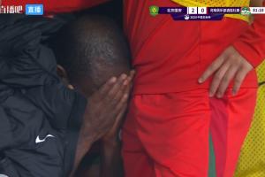 情绪崩溃! style='color:red;' href=/qiuyuan/zuqiu/53.html >阿奇姆彭被换下后坐在替补席捂脸痛哭,队友不停安慰。