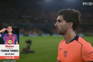 上演帽子戏法!官方:费兰当选贝蒂斯3-5巴萨全场最佳球员