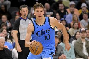 上半场比赛, style='color:red;' href=/qiudui/lanqiu/5.html>快船射手博格丹进攻状态不错,外线手感在线,他出战11分钟,三分3中2,罚球2中2拿到8分3篮板1助攻,正负值+1。